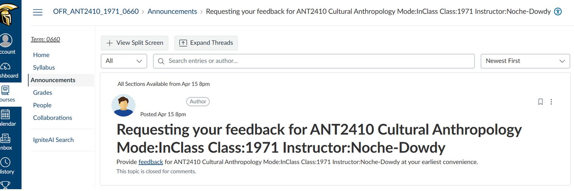 Canvas Announcement